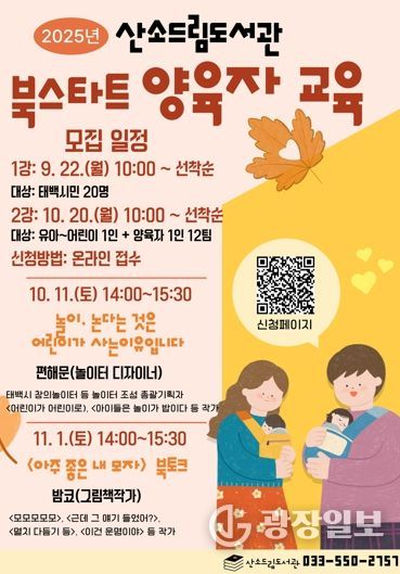 광장일보 이현나 기자 | 태백시는 산소드림도서관에서 북스타트 사업을 알리고 올바른 독서교육 방향을 제시하기 위해 “2025년 북스타트 양육자 교육”을 다음과 같이 운영한다고 밝혔다.