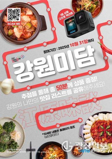 광장일보 이현나 기자 | 강원특별자치도와 강원관광재단은 미식 여행 트렌드의 확산에 맞춰 9월 22일부터 12월까지 3개월간 강원 미식 챌린지를 전용 누리집에서 운영한다고 밝혔다.