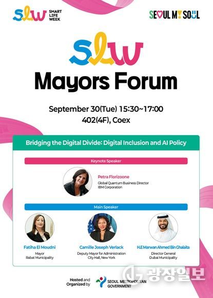 SLW 2025의 하이라이트 중 하나인 메이어스 포럼은 ‘디지털 격차 해소를 위한 디지털 포용과 AI 정책(Bridging the Digital Divide: Digital Inclusion and AI Policy)’을 주제로 열린다.