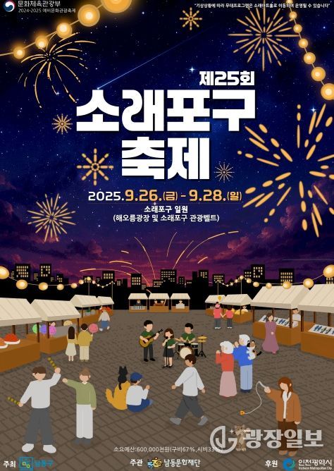 광장일보 주재영 기자 | 인천시 남동구와 남동문화재단은 오는 9월 26~28일까지 사흘간 열리는 ‘제25회 소래포구 축제’의 먹거리 정보를 사전에 투명하게 공개한다고 22일 밝혔다.