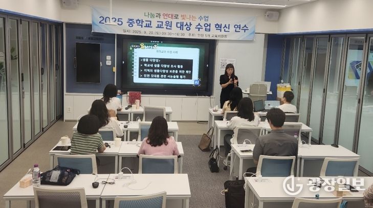 광장일보 주재영 기자 | 인천광역시교육청은 20일 제물포AI융합교육센터에서 관내 5개 교육지원청 주관으로 ‘2025 중학교 교원 대상 수업혁신 연수’를 운영했다고 밝혔다.
