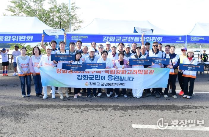 광장일보 주재영 기자 | 강화군 군민통합위원회는 지난 21일 오전, 내가면 함상공원에서 열린 인천일보 주최 해변마라톤 대회 현장에서 ‘강화경제자유구역 지정’과 ‘국립강화고려박물관 건립’을 주제로 한 홍보 캠페인을 성황리에 마쳤다.