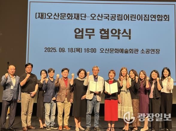 광장일보 나병석 기자 | 오산문화재단과 오산시국공립어린이집연합회는 지난 9월 18일 오산문화예술회관에서 지역 문화예술 활성화와 어린이 창의력 증진을 위한 업무협약을 체결했다.