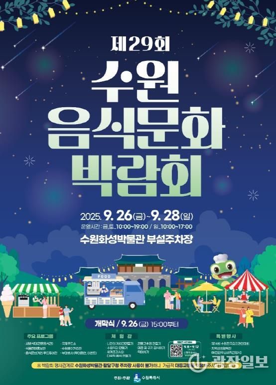 광장일보 나학천 기자 | 제29회 수원음식문화박람회가 9월 26~28일 수원화성박물관 부설주차장에서 열린다.