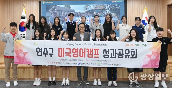 광장일보 주재영 기자 | 연수구는 지난 22일 연수구 제2청사에서 ‘연수구 미국영어캠프’ 성과공유회를 개최해 참가 장학생들의 학습 성과와 글로벌 경험을 함께 나누는 자리를 마련했다.