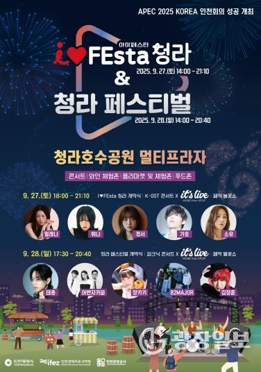 광장일보 주재영 기자 | 인천경제자유구역청이 주최하고 인천관광공사(사장 백현)가 주관하는‘2025 I♥FEsta 청라 & 청라 페스티벌’이 9월 27일과 27일 이틀간 청라 호수공원 멀티프라자에서 열린다.