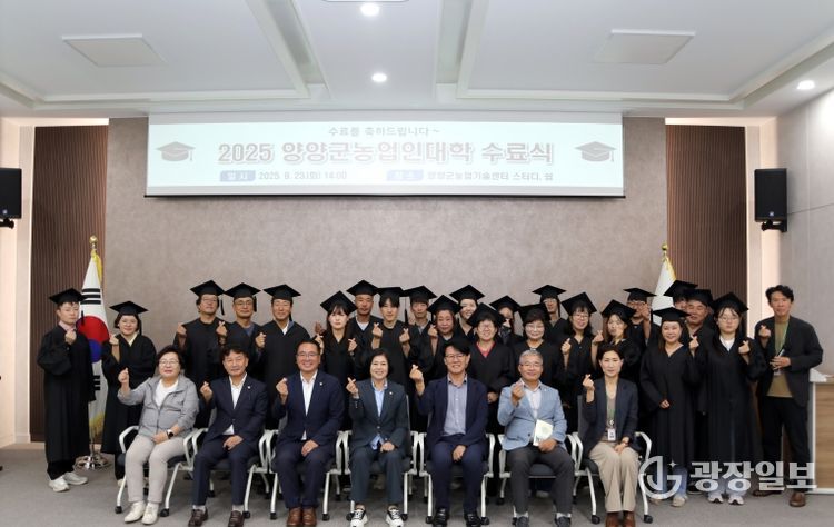 황병길 농업기술센터소장은 “6개월 동안 열심히 교육에 참여해 수료하신 것을 진심으로 축하하며 지역 농업 경쟁력 향상을 위한 선도자 역할에 최선을 다해주시길 바란다”라며 “양양군 또한 전문 농업인 육성을 위한 맞춤형 교육 제공에 최선의 노력을 다하겠다”라고 말했다.