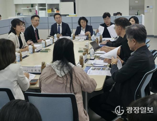 광장일보 나병석 기자 | 화성특례시의회 의회운영위원장, 도시건설위원회 김영수 의원(더불어민주당, 동탄7~9동)은 옹벽 붕괴 민원 문제를 해결하기 위해 9월 23일 현민초등학교에서 간담회를 개최했다. 김영수 시의원, 신미숙 도의원, 화성시청, 시행사, 건설사, 화성오산교육지원청, 신원태 교장 및 학교·학부모 등 관계자 대표들이 참석했다.