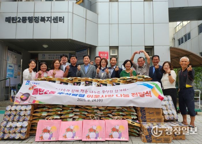 광장일보 나학천 기자 | 수원시 영통구 매탄2동은 24일, 민족 최대 명절인 추석을 앞두고 관내 어려운 이웃을 위한 ‘이웃사랑 나눔 전달식’을 개최했다.