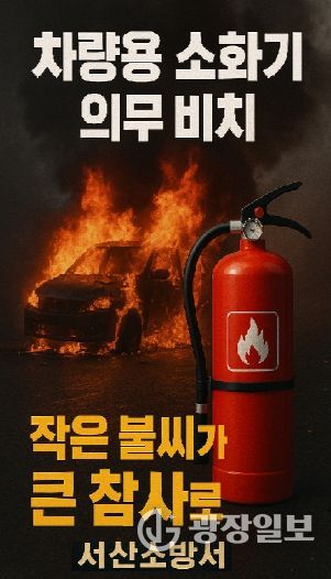 광장일보 주재영 기자 | 서산소방서는 최근 빈번히 발생하는 차량 화재 사고와 관련해 차량용 소화기 비치 의무화를 적극 당부했다.