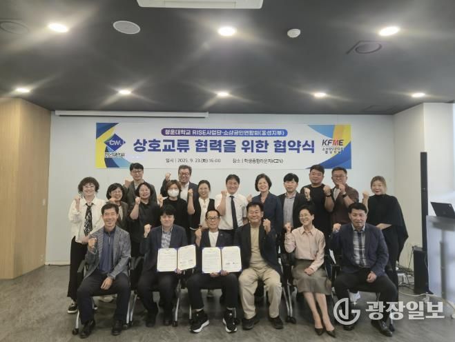 광장일보 주재영 기자 | 홍성군은 지난 23일 청운대학교 학생종합라운지에서 소상공인연합회 홍성지부와 청운대학교 RISE사업단이 지역 소상공인 및 청년 창업 생태계 조성을 위한 상호협력 업무협약(MOU)을 체결했다고 밝혔다.