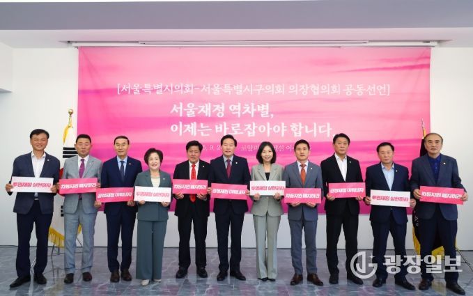 이날 행사에는 최호정 서울시의회 의장과 조동탁 서울시구의회의장협의회 회장, 서울 각 자치구 의장이 참석해 재정 불균형 해소를 위한 의회의 공동 대응을 선언했다. 더불어민주당은 중랑구의회 의장을 제외하고 공동선언에서 모두 빠졌다.