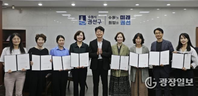 광장일보 나학천 기자 | 수원시 권선구는 지난 24일, 권선구청 구청장실에서 김종석 구청장을 비롯해 행정의 최일선에서 헌신·봉사하고 있는 통장 8명이 참석한 가운데 ‘2025년 하반기 통장자녀 장학금’전달식을 가졌다.
