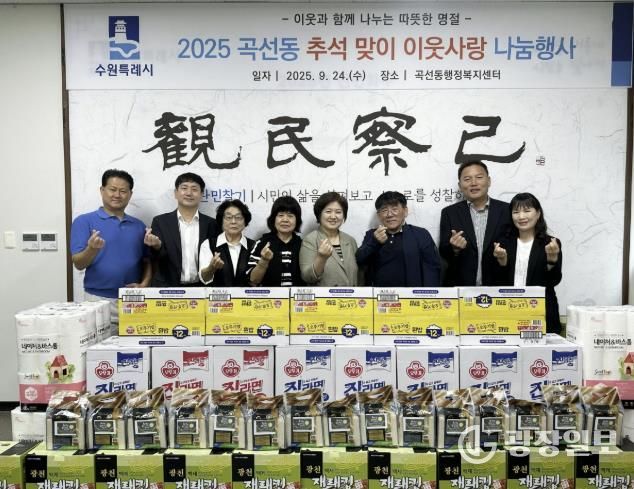 광장일보 나학천 기자 | 수원시 권선구 곡선동 행정복지센터는 지난 25일, 민족 최대 명절인 추석을 맞이하여, 어려운 이웃들이 따듯한 명절을 보낼 수 있도록 이웃사랑 나눔 전달식을 개최했다.