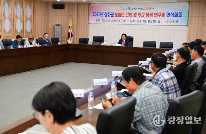 광장일보 주재영 기자 | 강화군은 지난 24일 관내 농업인 단체장과 주요 품목 연구회 대표들과 함께 연석회의를 열고, 가을철 수확기를 맞은 농산물의 고품질 유지와 농업 발전 방안을 모색했다.