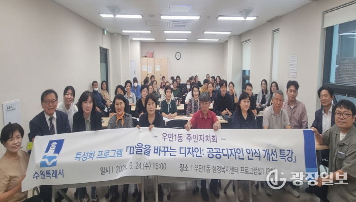 광장일보 나학천 기자 | 수원시 팔달구 우만1동 주민자치회는 지난 24일 우만1동 행정복지센터에서 특성화 프로그램의 일환으로 '마을을 바꾸는 디자인: 공공디자인 인식 개선 특강'을 진행했다.