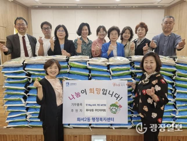 광장일보 나학천 기자 | 수원특례시 팔달구 화서2동 주민자치회는 추석 명절을 앞둔 9월 25일, 관내 도움이 필요한 이웃들을 위해 쌀 10kg 60포와 현금 40만원을 화서2동 행정복지센터에 전달했다.