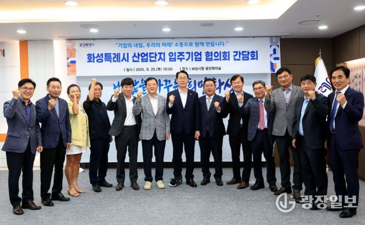 광장일보 나병석 기자 | 화성특례시가 25일 시청 중앙회의실에서 시와 기업 간의 상생 협력 방안 논의를 위한 ‘산업단지 입주기업 협의회 간담회’를 개최했다.