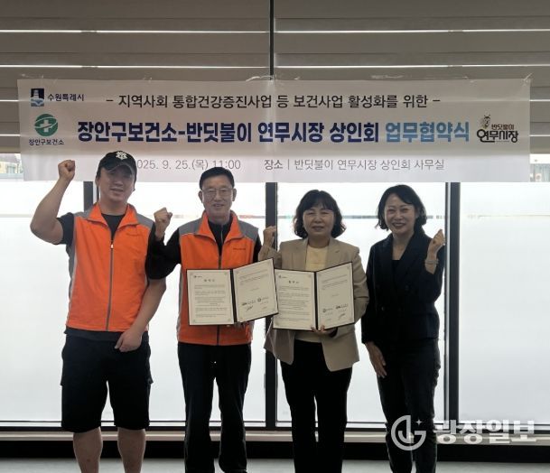 광장일보 나학천 기자 | 수원시 장안구보건소는 25일 반딧불이 연무시장 상인회와 ‘지역사회 통합건강증진사업 등 보건사업 활성화’를 위한 업무협약을 체결했다.