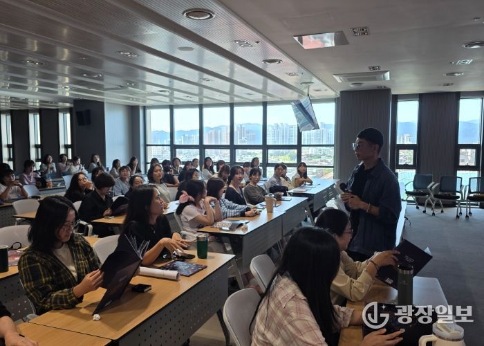이번 연수는 그림책 '감기걸린 물고기'의 저자 박정섭 작가의 특강과 봄봄유치원 주영선 교사의 동극 수업 사례 발표로 진행됐다. 교사들은 그림책의 언어적 가치와 창의적 언어활동, 음악과의 융합 등 실제 수업 사례를 통해 배운 내용을 현장 수업으로 확장할 수 있는 방안을 모색했다.