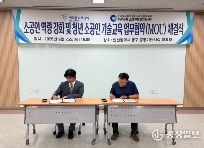 광장일보 주재영 기자 | 인천광역시는 9월 25일 인천송림 소공인특화지원센터에서 ‘소공인 역량 강화 및 청년 소공인 기술교육 지원을 위한 업무협약(MOU)’을 체결했다고 밝혔다.