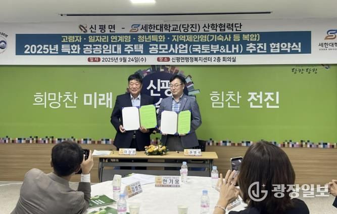 이상문 신평면장은 “이번 협약을 통해 청년과 지역 주민 모두가 안정적인 주거 환경을 누릴 수 있기를 기대한다”며 “세한대학교와 함께 지역경제 활성화와 정주여건 개선을 위해 최선을 다하겠다”고 말했다.