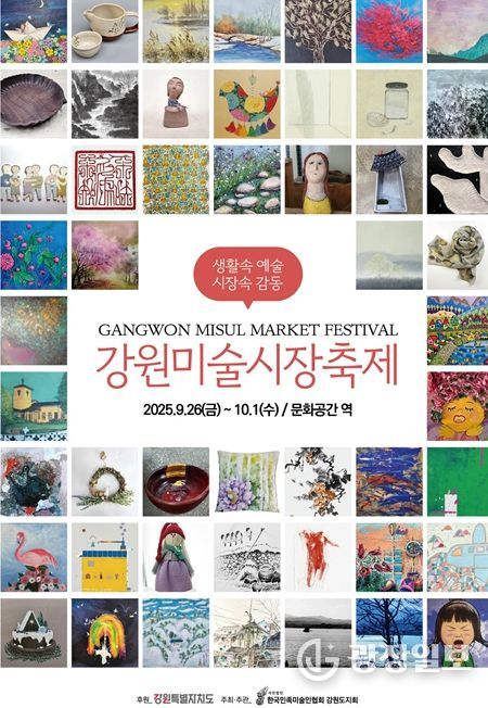 광장일보 이현나 기자 | 강원특별자치도는 (사)한국민족미술인협회 강원지회와 함께 '2025년 강원미술시장축제'를 9월 26일부터 10월 1일까지 6일간 남춘천역 1층 문화공간에서 개최한다.