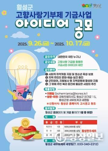 광장일보 이현나 기자 | 횡성군이 군민과 국민이 함께 만드는 지속가능한 지역 발전을 위해'고향사랑기부제 기금사업 아이디어 공모'를 진행한다.