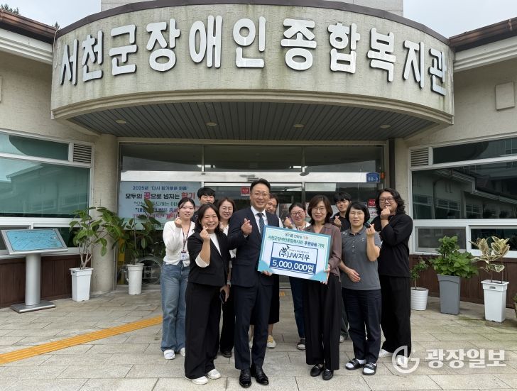 광장일보 주재영 기자 | ㈜제이더블유지우(대표이사 방현우)는 25일 서천군장애인종합복지관에 장애인을 위한 후원금을 기탁했다.