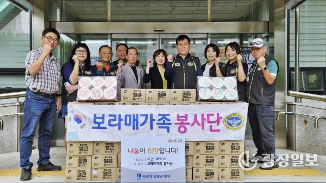 광장일보 나학천 기자 | 공군전우회 봉사단체 보라매가족 봉사단은 지난 24일, 추석명절을 맞아 권선2동 취약계층을 위해 라면 50박스를 기탁했다.