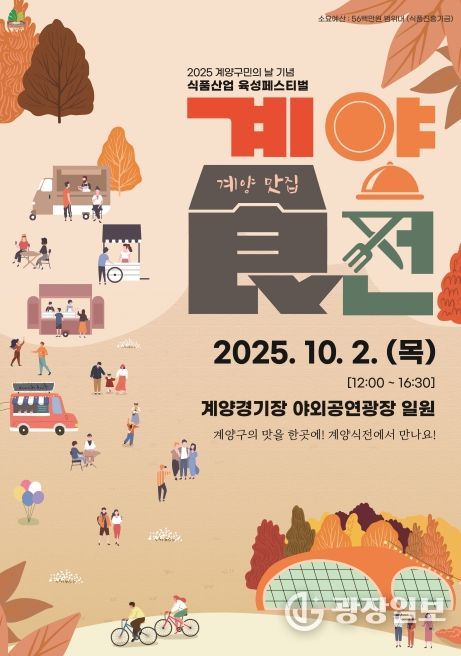 광장일보 주재영 기자 | 인천광역시 계양구는 제31회 구민의 날을 맞아 행사를 오는 10월 2일 12시부터 계양경기장 야외공연광장에서 식품산업육성 페스티벌 ‘계양食(식)전’ 행사를 개최한다.