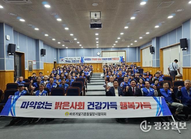 광장일보 주재영 기자 | 바르게살기운동 밀양시협의회는 밀양시여성회관에서 임원, 읍·면·동 위원장과 위원 등 120여 명이 참석한 가운데 도덕성 회복 강연회 및 마약 퇴치 캠페인을 개최했다고 26일 밝혔다.