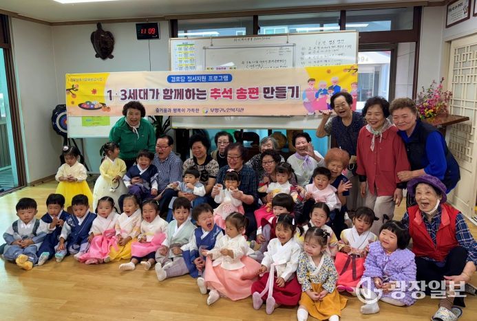 광장일보 주재영 기자 | 부평구노인복지관은 민족의 명절인 추석을 앞두고 9월 22일부터 25일까지 4일동안, 부평구 내 6개소의 경로당에서 어르신과 지역 어린이집 원아들이 함께하는 ‘1․3 세대통합 송편만들기 행사’를 성황리에 마무리했다고 밝혔다.