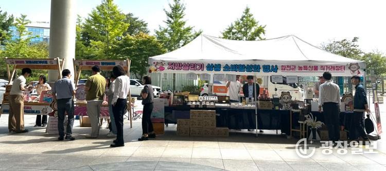 광장일보 주재영 기자 | 합천군은 9월 26일 세종시 정부세종청사 5동에서 '지방살리기 소비활성화 행사'를 열고 고향사랑기부제 홍보와 관광·축제 소개, 춘란 전시, 농특산물 직거래장터 운영을 진행했다.