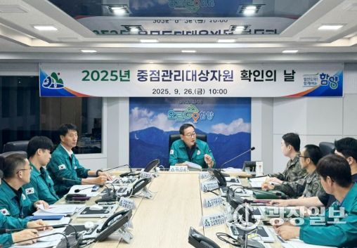광장일보 주재영 기자 | 함양군은 9월 26일, 군청 재난종합상황실에서 ‘2025년 3분기 중점관리대상자원 확인의 날’ 행사를 개최했다.