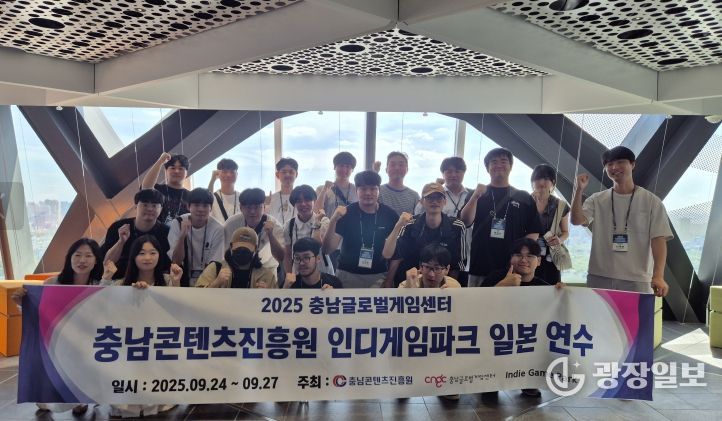 광장일보 주재영 기자 | 충남콘텐츠진흥원 산하 충남글로벌게임센터가 24일부터 4일간 2025 인디게임파크 선발팀들의 글로벌 역량 강화를 위해 일본 연수를 진행한다고 밝혔다.