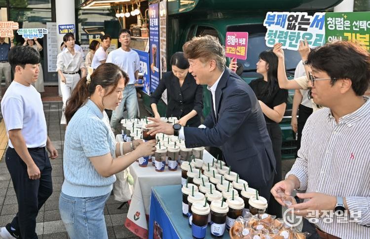 이날 캠페인에서는 서구청 정문 출입구에서 출근하는 직원들에게 청렴 명언이 담긴 포춘쿠키와 커피·에이드 등 음료를 함께 제공해 청렴 메시지를 전했다.