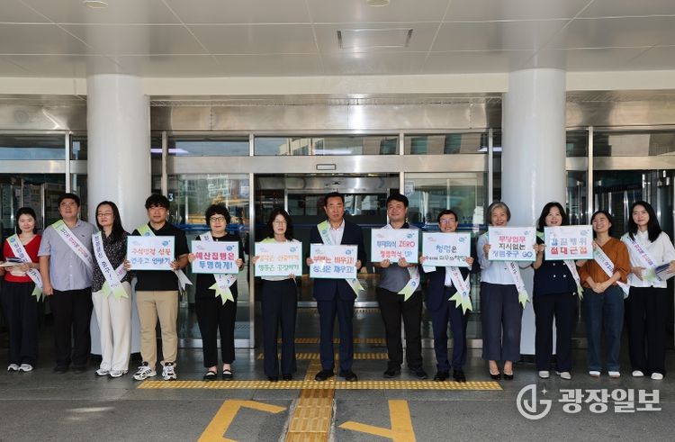 광장일보 주재영 기자 | 부산 중구는 26일 청사 입구에서 깨끗한 공직문화 조성을 위한‘청렴 실천 캠페인’을 실시했다.