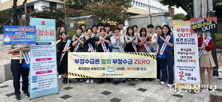 광장일보 주재영 기자 | 대구 서구는 지난 9월 24일 오후 서구청 청사 앞에서 복지급여 부정수급 제로화를 목표로‘부정수급 근절(OUT)!’ 캠페인을 했다고 밝혔다.