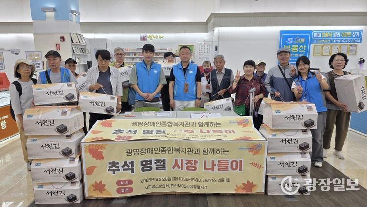 광장일보 주재영 기자 | 광명장애인종합복지관은 9월 26일 광명사거리역 인근 쇼핑몰 크로앙스 1층에서 ‘추석 명절 시장 나들이’ 행사를 열어 장애인과 가족 50가정이 지역 전통시장을 함께 걸으며 명절의 정을 나눴다.
