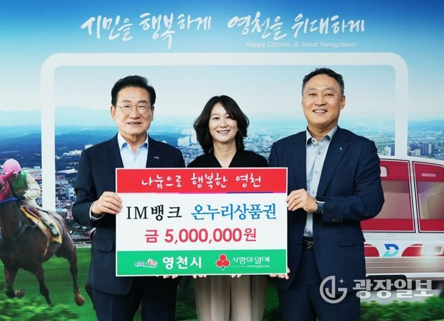이날 시장실에서 열린 기탁식에는 강구석 iM뱅크 영천지점장이 참석해 온누리상품권을 직접 전달하며, 지역의 어려운 이웃을 위한 따뜻한 나눔을 실천했다.
