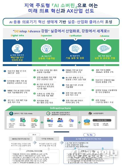이번 사업은 새 정부의 ‘인공지능(AI) 대전환·초혁신경제 선도프로젝트’ 및 ‘5극 3특’ 초광역 성장엔진 전략에 대응하는 것으로, 강원권 성장엔진 후보 산업인 바이오와 연계하여 인공지능(AI) 의료기기 산업을 강원의 새로운 성장동력으로 육성하는 데 목적이 있다.