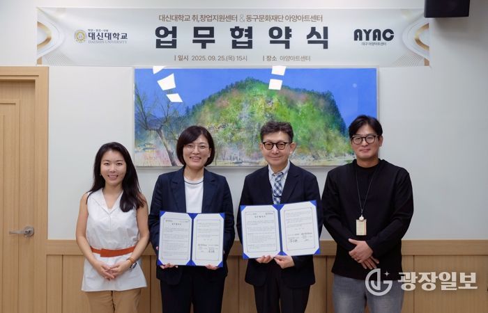 광장일보 주재영 기자 | (재)대구동구문화재단 아양아트센터와 대신대학교는 지난 25일 아트센터에서 문화예술 가치확산을 위한 업무협약을 체결했다.