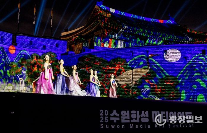 광장일보 나학천 기자 | 2025 수원화성 미디어아트가 27일 화서문에서 개막했다.