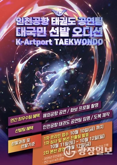 광장일보 주재영 기자 | 인천국제공항공사는 인천공항에서 진행되는 태권도 상설공연인 ‘2025-2026 인천공항 태권도 상설공연’에 참여할 태권도 전문 공연팀을 공개 모집한다고 28일 밝혔다.