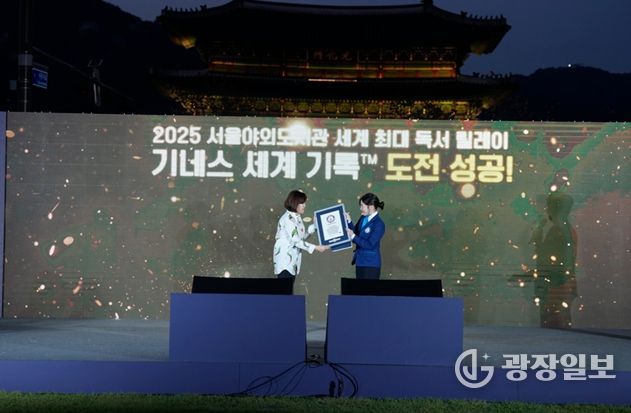 광장일보 주리아 기자 | 서울시는 광복 80주년과 윤동주 시인 서거 80주년을 기념해 9월 27일 광화문광장에서 개최한 ‘세계 최대 독서릴레이(Most people in a reading relay)’ 기네스 세계 기록™ 도전에 최종 성공했다고 밝혔다. 이로써 ‘세계 최대 독서 릴레이’ 기네스 세계 기록™ 보유국은 대한민국이 됐다.
