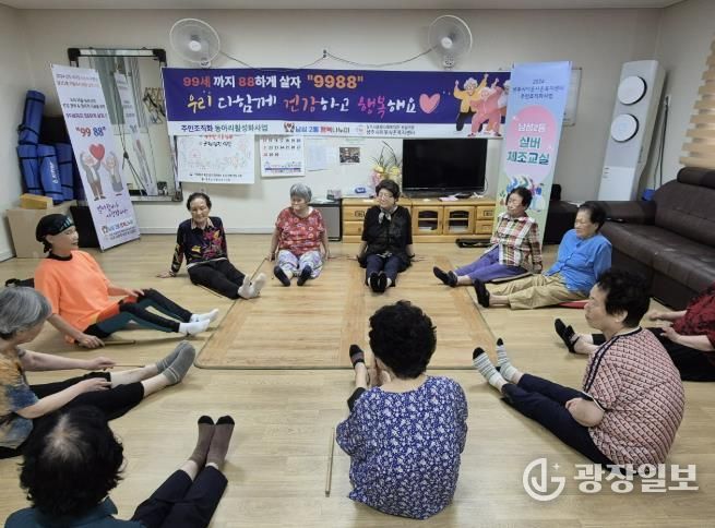 광장일보 주재영 기자 | 상주시이웃사촌복지센터는 9월 25일 남성2통 노인회관에서 남성2통 어르신 20여 명을 대상으로 노인의 사회적 고립 해소 및 삶의 질 향상을 위한 동아리 활성화 사업 ‘99세까지 88하게 살자 - 9988’을 진행했다.