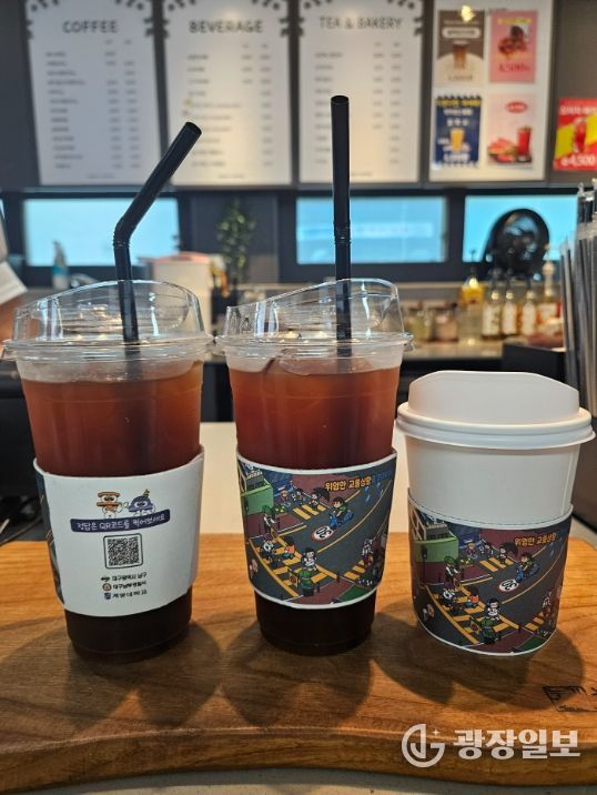 광장일보 주재영 기자 | 대구 남구는 대구남부경찰서 및 계명대학교와 협업하여 “교통안전 컵홀더”를 제작하여 남구청 내 카페를 비롯한 구청 주변 카페에 배부했다. 음료를 마시면서 생활 속 교통 위험 요소를 찾아보고 QR 코드 속 정답을 통해 교통안전 수칙을 익히는 계기를 마련하고자 제작하게 됐다.