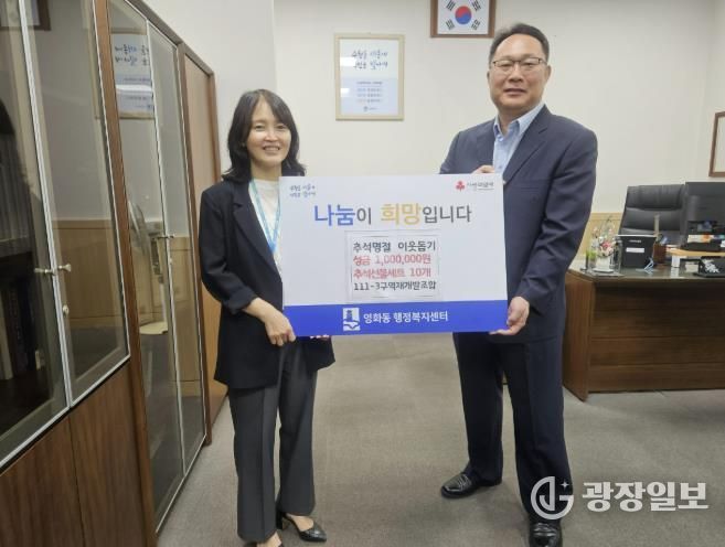 광장일보 나학천 기자 | 수원시 장안구 영화동 111-3구역 주택재개발정비사업조합은 지난 26일, 추석 명절을 맞아 지역 내 저소득층을 지원하기 위해 130만 원 상당의 후원금을 영화동 행정복지센터에 전달했다.