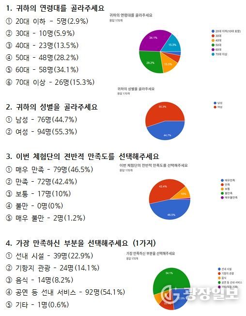 이러한 노력으로 체험단 200명 중 170명(85%)이 응답한 만족도 조사에서 전반적 만족도는 88.9%, 향후 크루즈관광 재참여 의향은 90%가 긍정을 선택, 도민 참여형 정책의 성공을 입증했다.